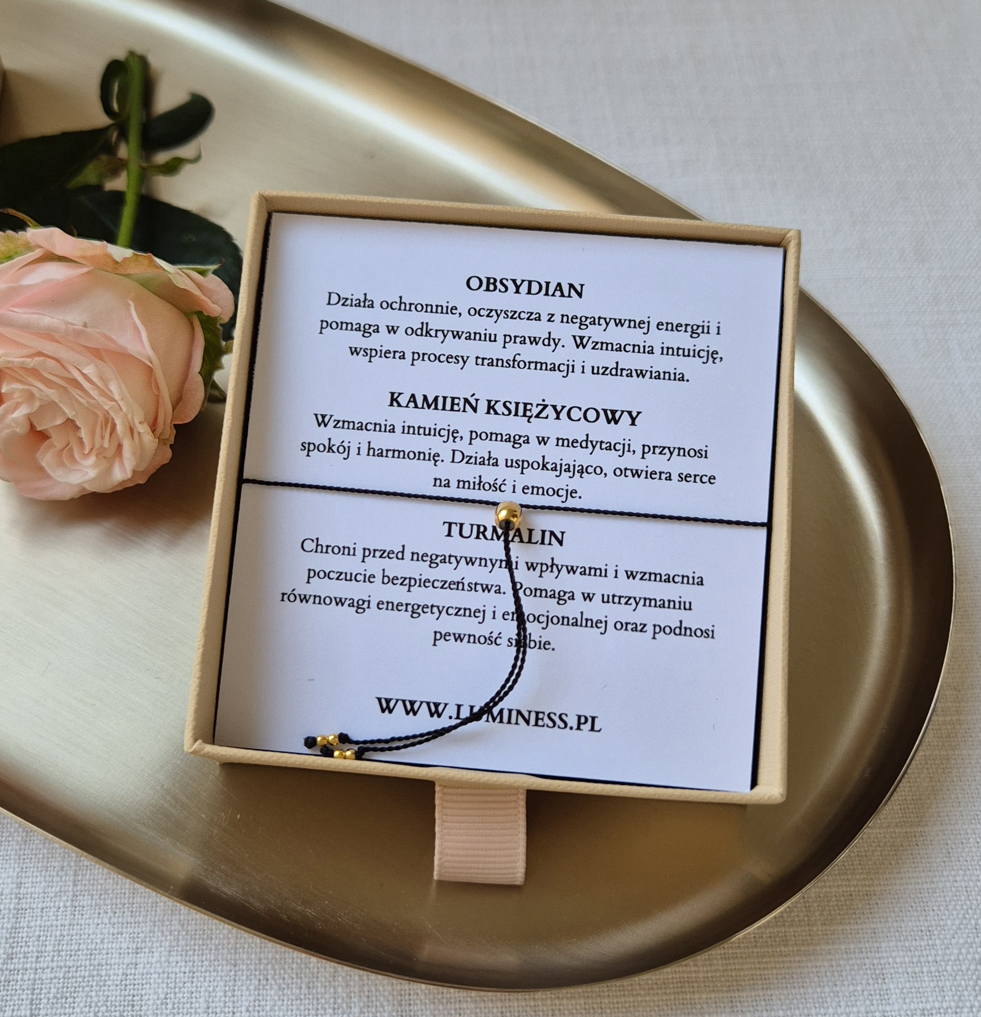Energia trzech starannie dobranych kamieni wspiera stabilność, intuicję i ochronę energetyczną: