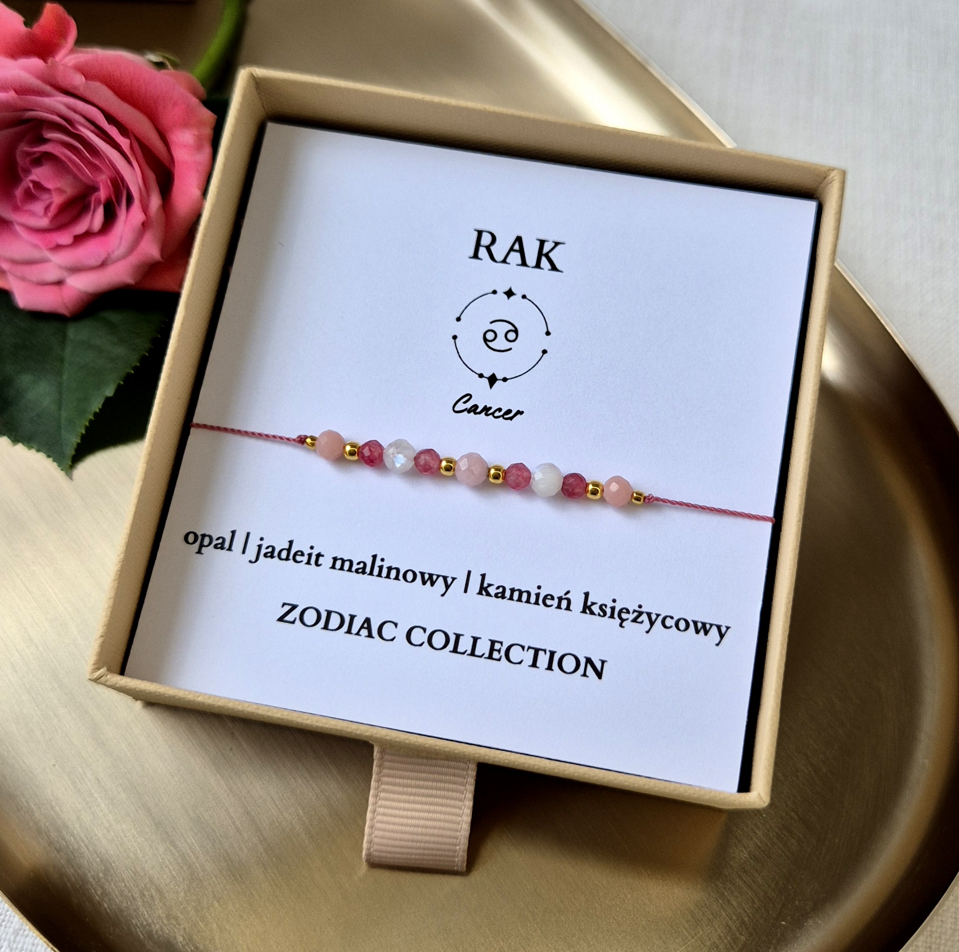 Bransoletka zodiakalna RAK – opal, jadeit malinowy, kamień księżycowy