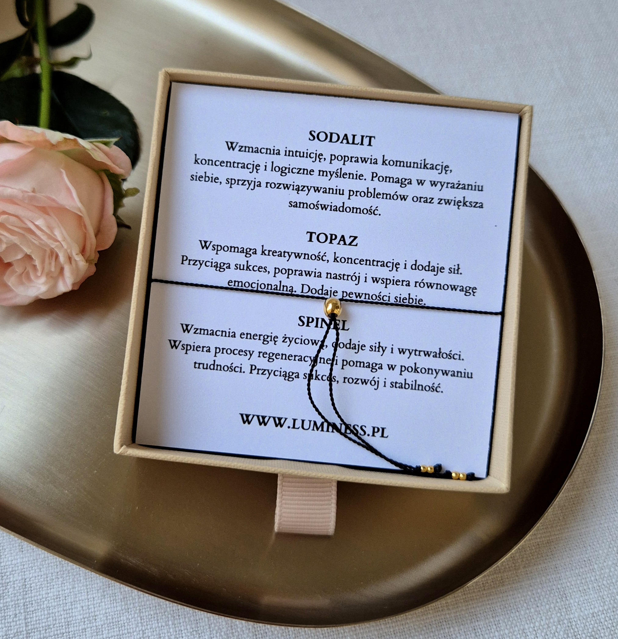 Energia trzech starannie dobranych kamieni wspiera siłę wewnętrzną, szczerość i poczucie kierunku: